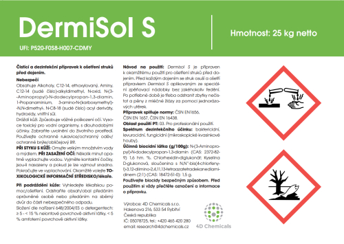 Dermisol S je tekutý vysoce pěnivý přípravek pro ošetření struků před dojením. Kombinuje vysokou dezinfekční účinnost kyseliny D-glukonové se synergickým účinkem speciálních kosmetických přípravků a látek pro zjemnění pokožky.