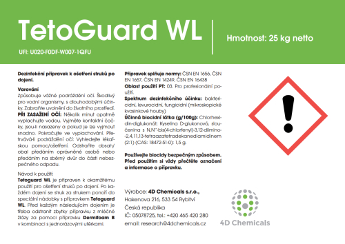 Tetoguard WL je tekutý vysoce viskózní přípravek pro ošetření struků a prevenci mastitidy po dojení. Přípravek Tetoguard WL kombinuje vysokou dezinfekční účinnost kyseliny D-glukonové se synergickým účinkem speciálních kosmetických přípravků a látek pro zjemnění pokožky.